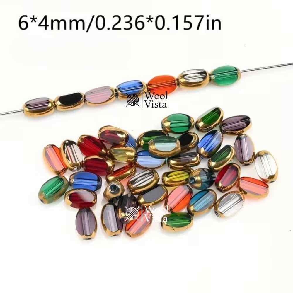 BRIOLETTE OVAL GLASS BEADS 6MM WITH GOLDEN SPACERS – DIY BRACELET & NECKLACE MAKING SUPPLIES (50PCS)